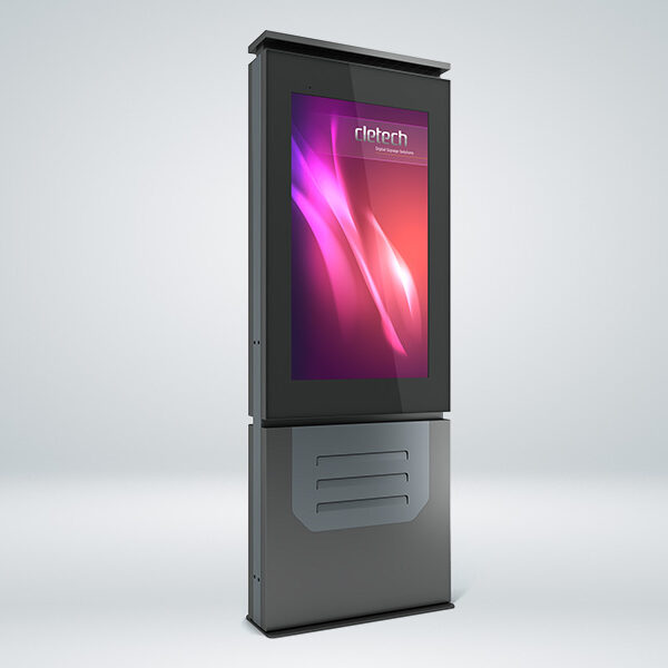 Cletech RS Outdoor Totem Cabinet is a protective solution designed specifically for high brightness monitors. This single-sided product features piston-driven, 10mm thick glass doors with dual-point locking. In addition to the doors, it also includes a suspension system capable of lifting the monitor upwards. Engineered to withstand all adverse weather conditions, its main frame is constructed from aluminum and steel materials.