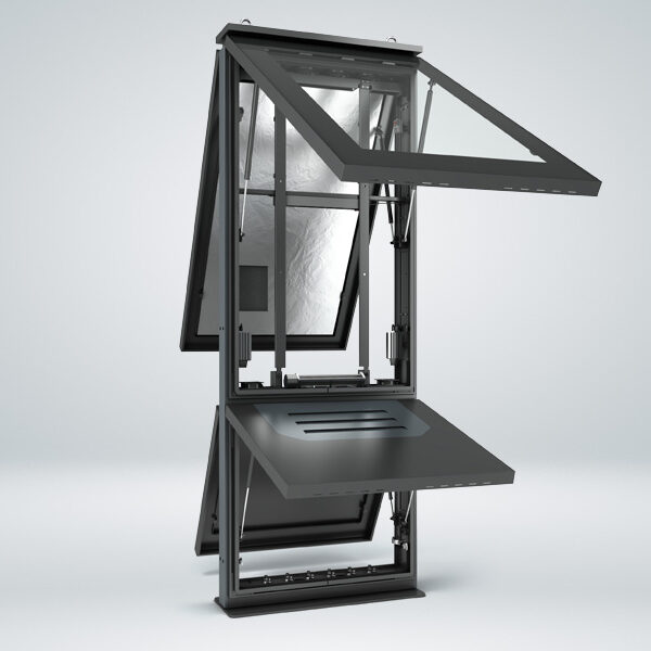 All metal surfaces are coated with zinc-based primer and then painted with polyester-based electrostatic powder paint, achieving an A2 fire resistance rating. With an IP56 protection class, this product is equipped with intake and exhaust fans, as well as curtain fans to ventilate the space between the screen and the glass.